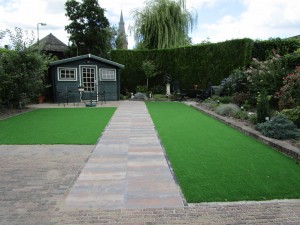 In Harmelen is de achtertuin herstraat en voor het gemak is gekozen voor het onderhoudsvriendelijke kunstgras. Deze klanten kozen voor het type Charming.