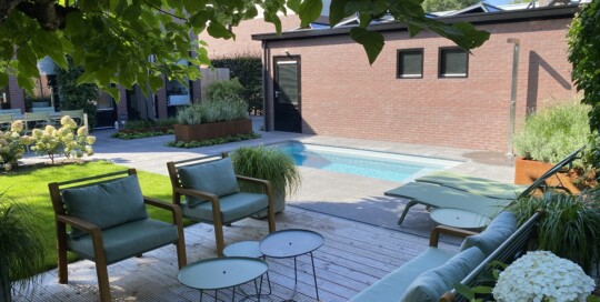 In Harmelen hebben onze medewerkers een droomtuin gerealiseerd voor de bewoners van deze woning. Het is een prachtige tuin geworden met Schellevis® 60x60 cm betontegels met een oud-Hollandse uitstraling. De zwembadrand is ook uitgevoerd in Schellevis® betontegels. Het terras achterin de tuin is gemaakt van Douglas hout, waarbij de oude boom is behouden. De [...]